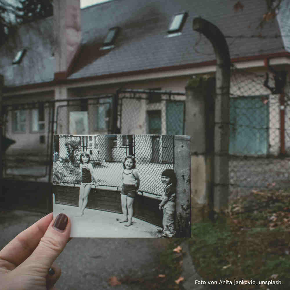 Die Identität zwischen Autor/in, Erzähler/in und Hauptfigur, die das Gleichheitszeichen anzeigt, ist jedoch nicht vollständig. Zwischen den dreien gibt es auch einen bedeutenden Unterschied, und der liegt im zeitliche Abstand. Eine Autobiografie wird im Rückblick geschrieben, anders als zum Beispiel ein Tagebuch oder ein Reise-Blog. Das schreibende Ich ist nicht mehr dasselbe wie das Ich zum Zeitpunkt jener Erlebnisse, es hat sich inzwischen verändert. Es schreibt (Gegenwart) wie es war (Vergangenheit). Das gilt umso mehr, je weiter die Zeit zurück liegt, über die berichtet wird, zum Beispiel bei Kindheitserzählungen. Zwischen den eigenen früheren Erlebnissen und dem heutigen Schreiben liegt das Erinnern und Vergessen, liegen die Erzählungen Dritter, zum Beispiel der Eltern, liegen eine Menge Fotos und die Wertvorstellungen des heutigen Lebens.